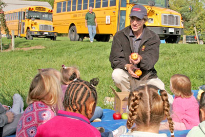 Each year, horticultural sciences professor Alan Lakso and his staff tell the children about the apple and grape varieties before they walk the grounds looking at trees and picking apples. The teachers usually take extra apples with them to use in such classroom activities as making applesauce, counting seeds and learning the parts of an apple.