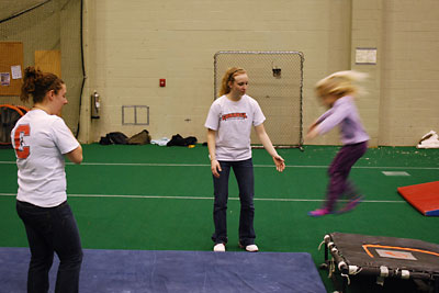 National Girls and Women in Sports Day, celebrated on campus Feb. 21, drew dozens of girls in grades one through six to Bartels Hall's Ramin Room, where they received pointers from Cornell women athletes on crew, gymnastics, volleyball, lacrosse, rugby and more.