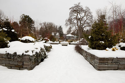 The garden was designed to be as beautiful in the depths of winter as any other part of the Plantations would be in summer. More than 700 plants were chosen for their interesting bark texture or color, winter fruit, cones, evergreen foliage or unusual growth habit, said Jim Mack, horticultural supervisor. "We have cotoneaster planted in raised beds in the center of the garden, and it cascades over the wall stone in a fantastic way."