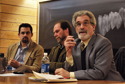 Cornell professor of government Matthew Evangelista, former director of the Peace Studies Program and the third panelist, looked at how international law applies to war. Because Israel is a state and Hamas is not, investigation of charges of war crimes or terrorism is difficult. Self-defense by Israel is covered under law; resistance by Hamas takes place "without the protections of the Geneva Conventions because they're not soldiers organized in traditional fashion," Evangelista said. "If they engage in military force, they risk being treated as common criminals engaging in murder."