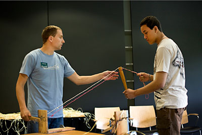 Some took stream samples from Fall Creek to track organisms, while others tracked food-borne pathogens in strawberries using DNA fingerprinting. Students interested in natural resources got to spend a day in Arnot Forest learning how to tap maple trees, grow mushrooms and harvest timber with all-terrain vehicles. Those curious about biomedical research isolated precursor heart tissue from an embryo, then watched it grow and start to beat. The Department of Fiber Science & Apparel Design challenged students to "upcycle" two T-shirts into new fashions, book covers, jewelry or anything else they could create. Other workshops included a chicken dissection, an ecological canoe trip on Beebe Lake, a campuswide GPS geocache hunt, a rocket launch and an introduction to Holly the fistulated cow.