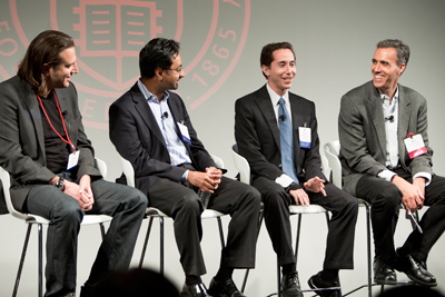 The panel discussion, moderated by Huttenlocher and composed of Neeraj Agrawal '94, General Partner, Battery Ventures; Noah Goodhart '97, co-founder, WGI Group; and Todd Krizelman '96, co-founder and CEO, MAGAZINERadar, addressed such topics as the startup climate in New York City, the Internet bubble, how best to start a company, and how to secure funding in the post-dotcom era. They all noted how ripe New York City is for a tech campus such as the one Cornell is proposing.