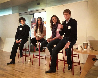 "Probably one of the most valuable exercises is to try to find someone who disagrees with you completely and try to get them to change their mind or try to get them to change your mind," said Caitlin Strandberg '10, associate director of business development at Bēhance, a network for creative professionals, during a panel of entrepreneurs discussing strategies for interdisciplinary collaboration. "Not enough people do that because it's a very uncomfortable thing to do, but you're almost spinning your wheels if you don't do that."