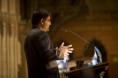 Syed Rehman, a Muslim who grew up in Pakistan and Saudi Arabia, is the Web developer at Cornell's Laboratory of Ornithology, while his partner, Manda, is the associate pastor at the First Congregational Church in Ithaca. At Soup and Hope Feb. 16 in Sage Chapel, Rehman spoke of how he learned to navigate among the differences between Islam and Christianity and to be respectful of all religions.