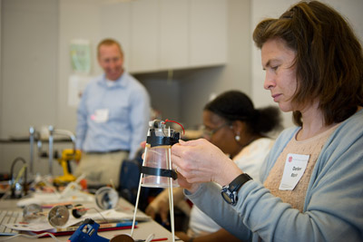 The workshops, led by professors and graduate students from Cornell in Ithaca and Weill Cornell, showed teachers how to convert recycled materials into functional gadgets, discover genes that are vital to food supply, explore the concept of resonance, study the uses and safety of nanoparticles and learn about friction.