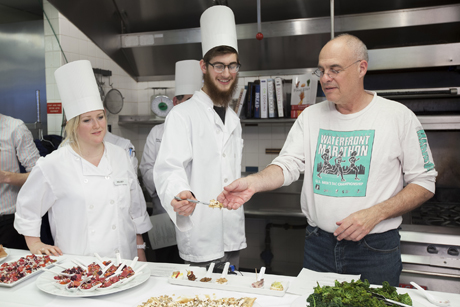 Using only ingredients found within 35 miles of Ithaca, students skilled at cooking created dishes worthy of fine dining. The students in the new University Course used the Statler Hall teaching kitchens.