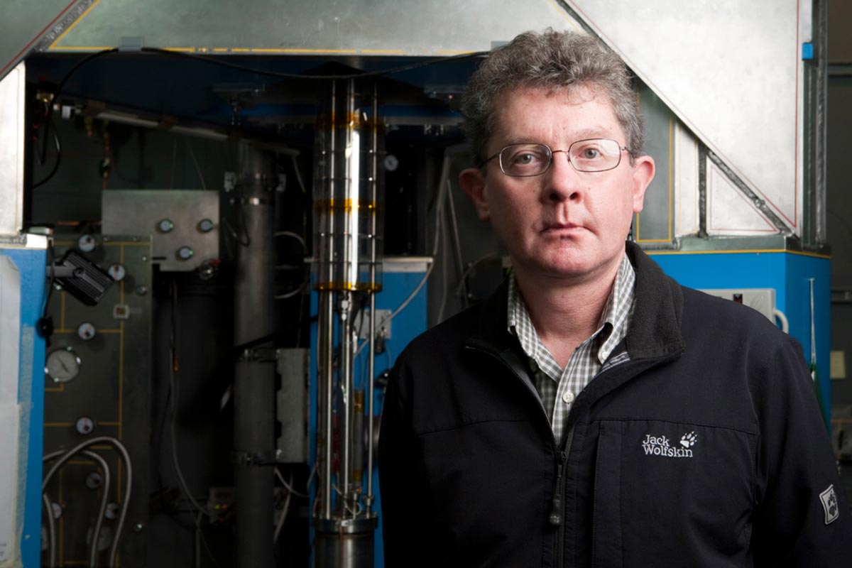 The STM scans a sample with a probe so sharp that its tip is a single atom, moving across a surface in steps smaller that the diameter of an atom. Measuring current flow between the tip and the surface as the probe is moved up and down gives a topographic map of the surface, while varying the voltage reveals the energy of electrons under the probe, in effect measuring how much positive charge is needed to pull an electron loose. The specially built STM allows scanning at cryonic temperatures and under a high magnetic field such as might be found in motors and other practical devices.