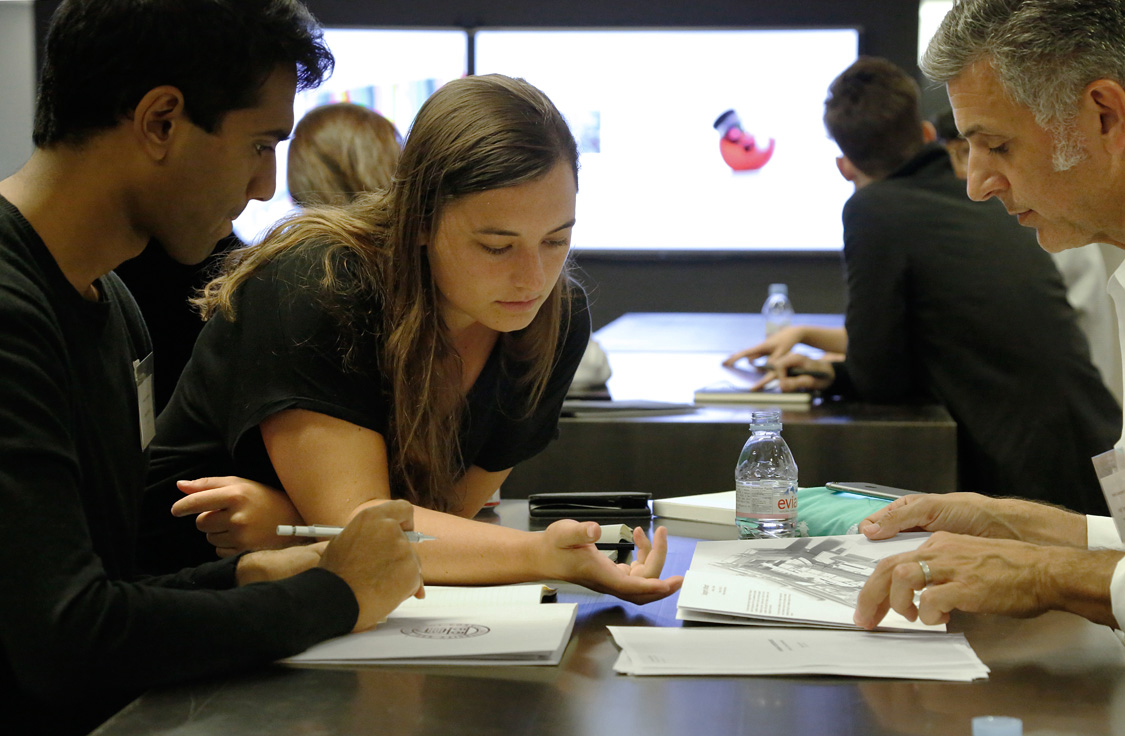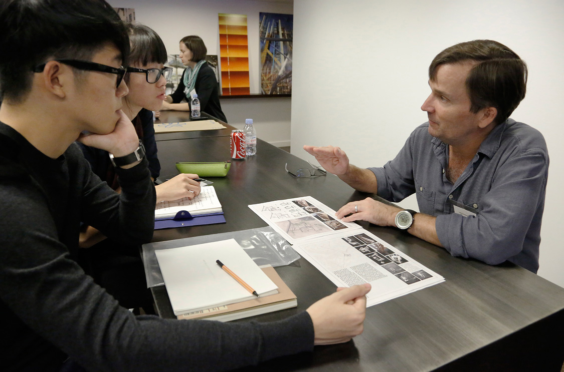 Professionals who participated in the portfolio critique included Kumar Atre, B.Arch. ’12, of Diller Scofidio & Renfro; Mia Kang, M.Arch. ’14, of Snøhetta; Terri Lee, B.Arch. ’04, of KPF; Ana Leshchinsky, B.Arch. ’08, M.Arch. ’09, of KPF; Joe Pikiewicz, of FXFOWLE; Janice Rim, B.Arch. ’14, of Bjarke Ingels Group; and Hugh Trumbull, B.Arch. ’88, M.Arch. ’93, of KPF.