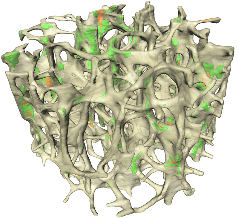 Everyday wear and tear creates microscopic fractures in bone that are constantly repairing themselves. That was thought to have played a major role in why elderly people are at particular risk for broken bones as a result of falls. But the Hernandez group found, instead, that it’s the material heterogeneity of cancellous bone that limits crack propagation and eventual failure.