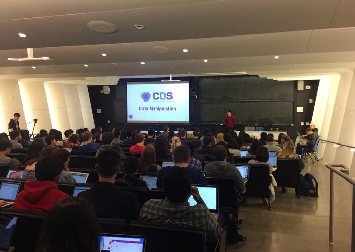 The Cornell Data Science Training Program is a one-credit unofficial course offered through the Cornell Data Science project team. The 12-week course focuses on manipulating data, visualizing trends and implementing machine-learning algorithms. Students are not expected to have any programming experience and are taught the R programming language (used for statistical analysis and data mining) to supplement the concepts they encounter. They then use their new skills to complete four assignments and two real-world data science projects.