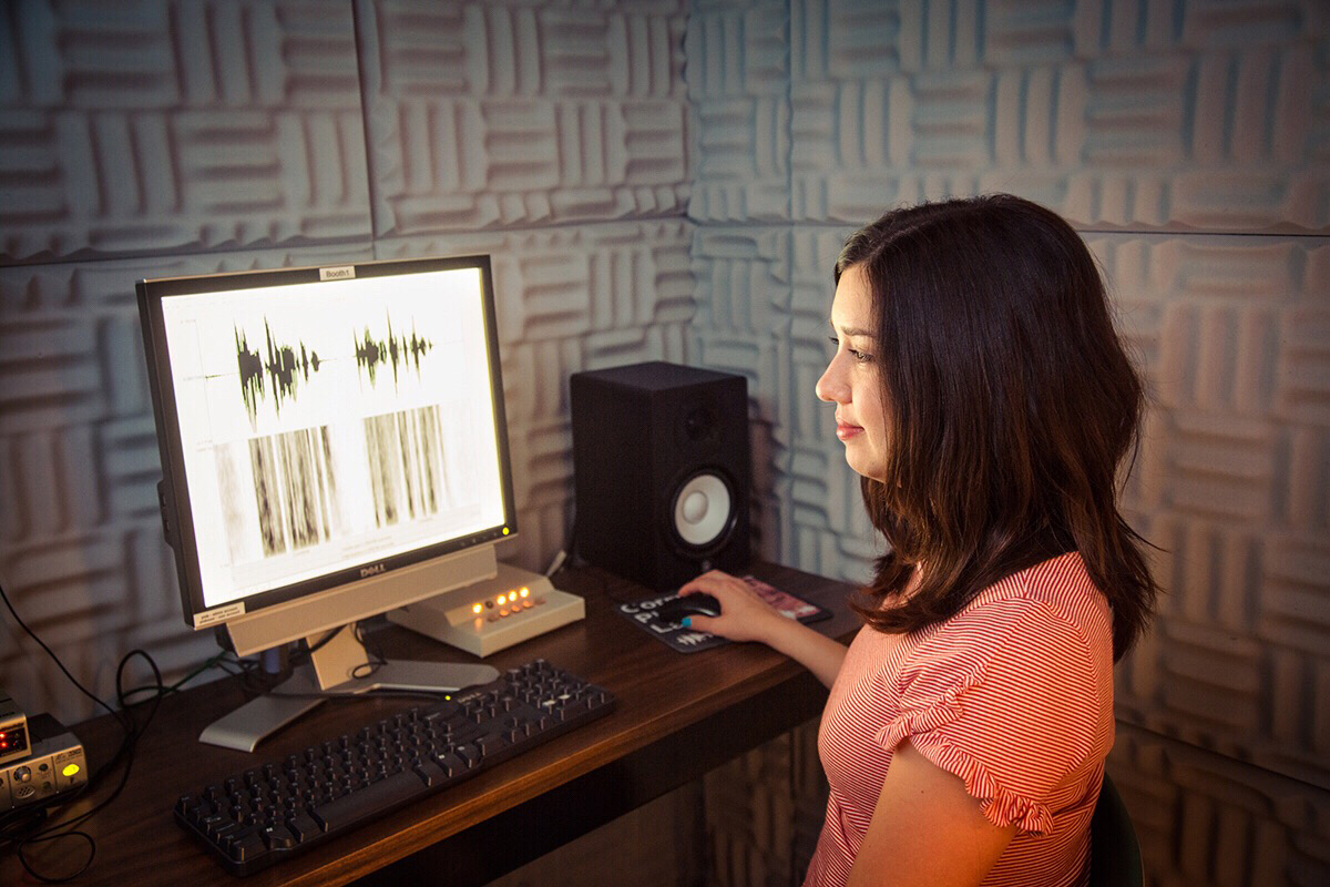 To develop the experiment, she had to create a computer program (with help from Sam Tilsen, assistant professor of linguistics) that participants will use. Participants will listen to two voices that have been recorded, responding verbally and interacting with the program. The program records their responses and helps to analyze the recordings for altered speech – including changes in consonants, vowels, rhythm and pitch.