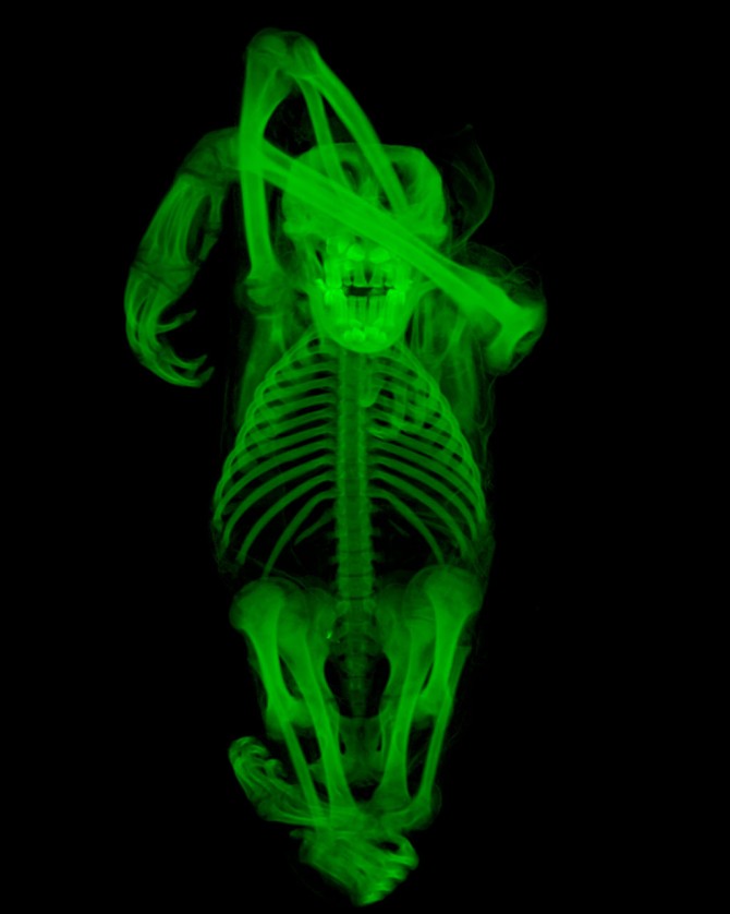 The idea behind the grant was to CT scan one species of every genus of vertebrate, thereby building an online digital library of each organism’s appearance – its phenotype, or observable characteristics – with respect to the skeletal anatomy. While most of the images are skeletons, some were stained with a special solution to provide better contrast and visualize soft tissues, such as skin and muscles. The scanners use X-rays, which can be set as weak as a medical X-ray for soft tissue, or strong enough to view through rocks and fossils.