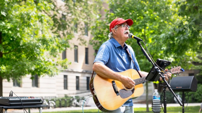 The afternoon included lawn games and music performances by Jim Sheridan, Cornell retiree; Beth Korson, CLASP program coordinator; and Jeremy Faulk, doctoral researcher. Participants had free iced coffee courtesy of Gimme Coffee, browsed Hortus Forum’s plant sale and even visited with Minnie, the College of Veterinary Medicine’s miniature horse.
